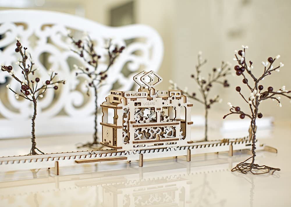 Ugears DIY wooden self-propelled 3D puzzle Tram on Rails