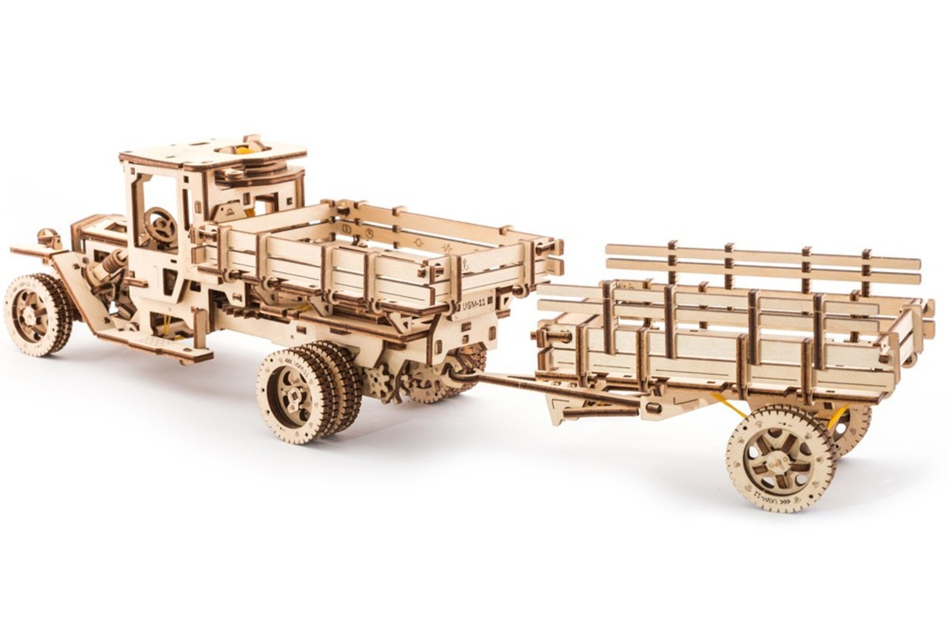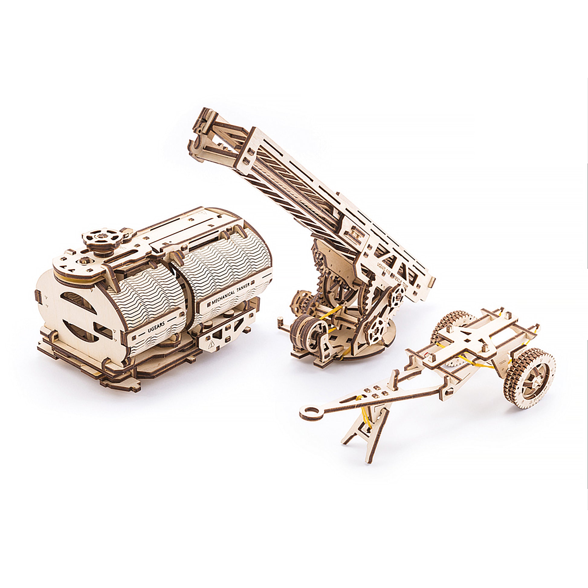 - UGears Truck Series with THREE Additions - Tanker, Fire Ladder, Trailer Сhassis – a new generation of our mechanical models with more technical elements and details that make it even more exciting. The Set of Additions for UGM-11 Truck – a perfect way to turn your Truck into Tanker or Fire Truck with a ladder and assemble the Truck's trailer.