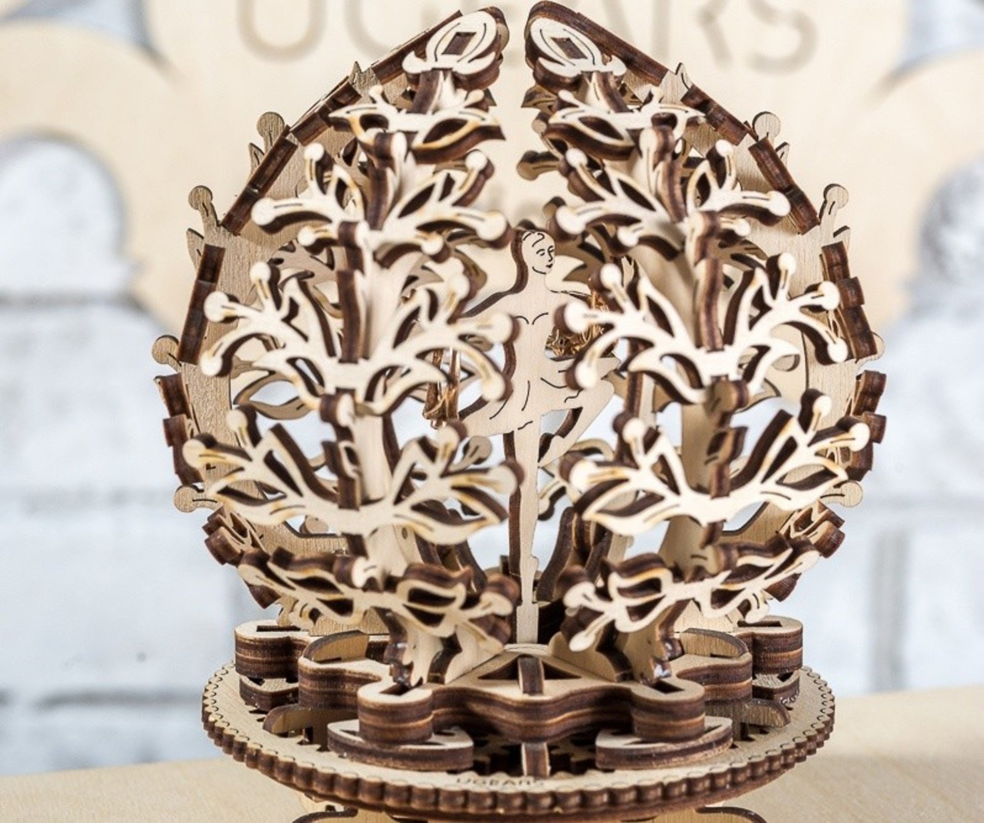 Mechanical Flower-etui is a tempting gift idea for your beloved one. Elegant petals, pleasant smell of wood, with Ballerina & Tree of Luck for your favorite jewelry inside. All you need to start or drive your love-story!