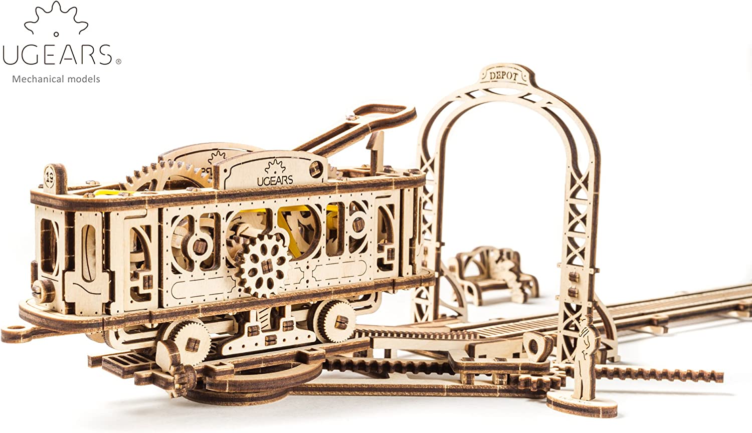 Wooden 3D puzzle Tram line from Mechanical Town series by Ugears