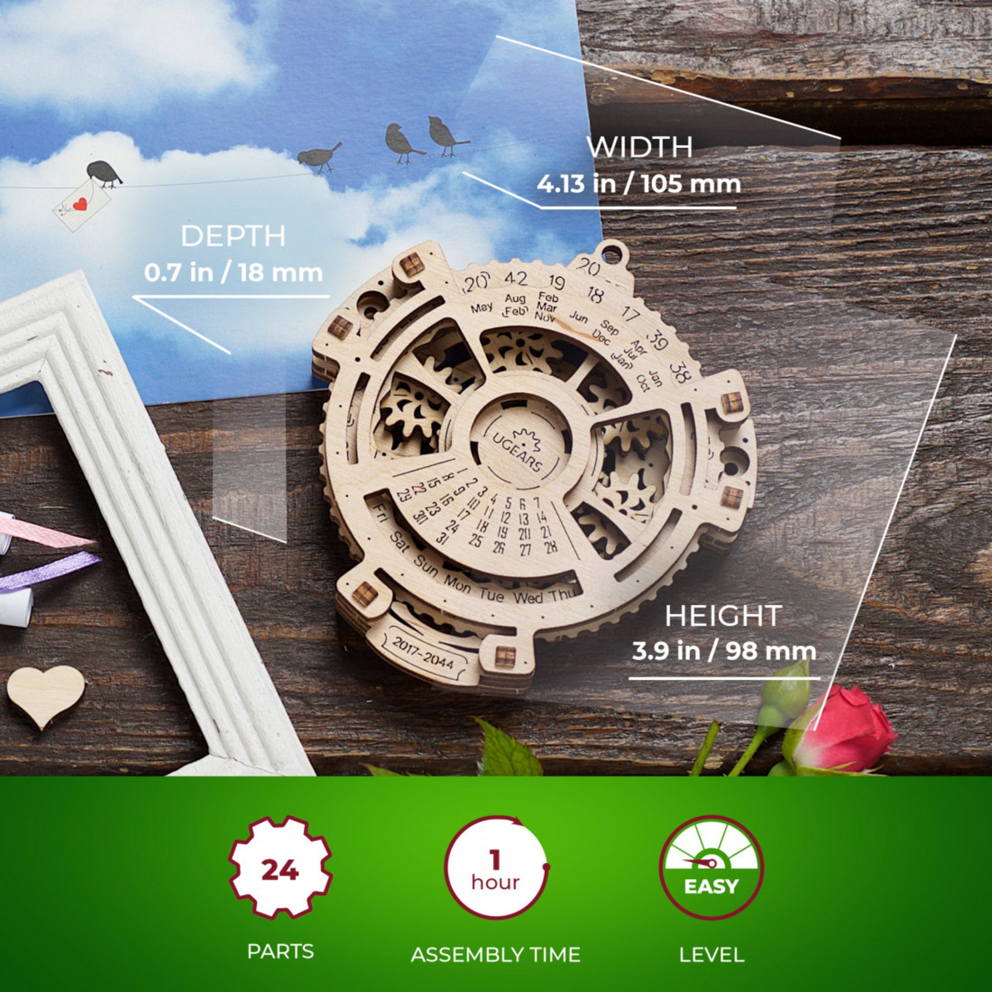 The Date Navigator helps to identify the day of the week for any date from 2017 to 2044. It’s assembled without glue like all UGEARS models.