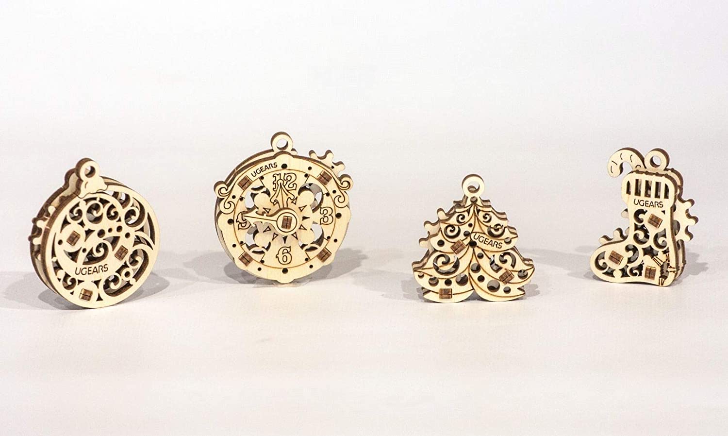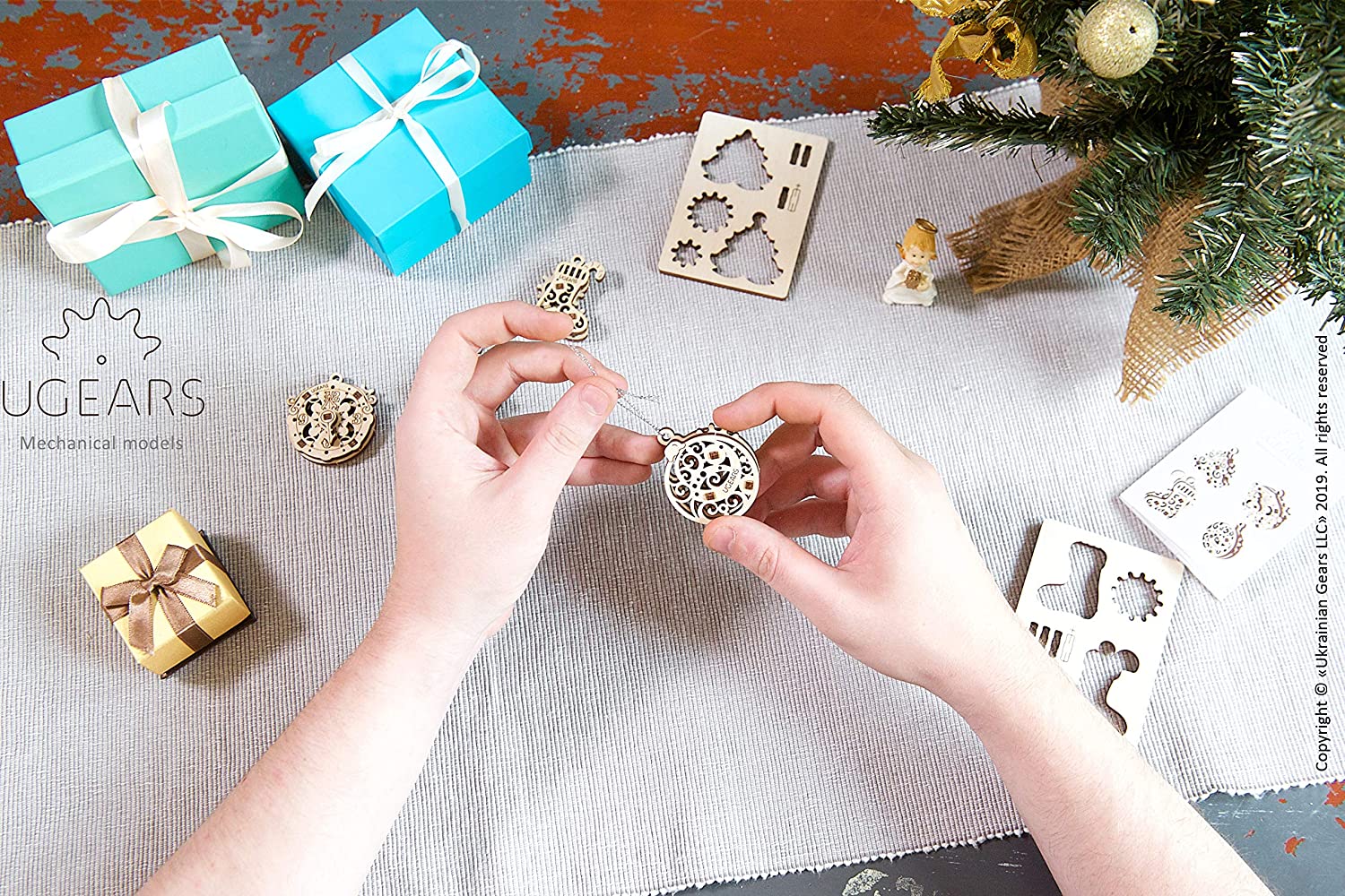 - Unique kit of 4 miniature models to assemble, suitable for adults and children aged 5 to 80 years and above. It includes a stocking filler, a Christmas tree, a clock and a Christmas bauble. Each model has basic mechanical elements and is made exclusively from first-class wood. All components are pre-cut and can be easily removed from the plate. The model is easy to assemble like a puzzle, without glue, toothpicks or special tools. Colour instructions are also included