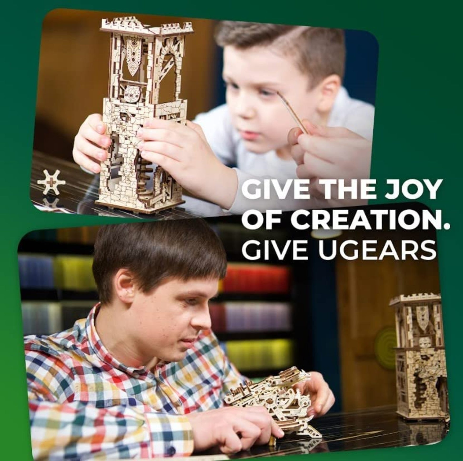 - THE PERFECT PRESENT: For any history lover or child passionate about discovering the ancient military techniques, the UGears arch ballista and tower model is the ultimate present that will bring a smile on anybody's face and will be a real lesson of dexterity and engineering for the little ones.
