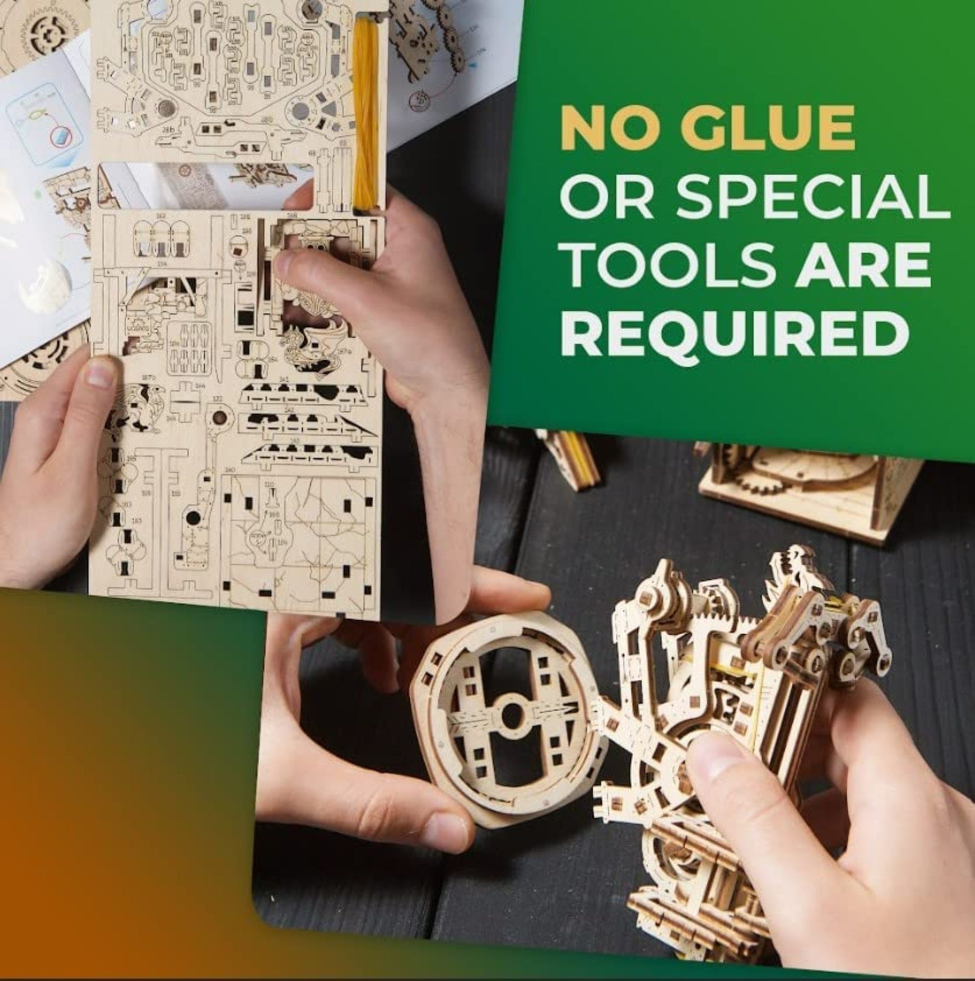 Ugears models are made from sustainably sourced, laser cut plywood sheets. Everything you need is inside the box, so you can get building right away.