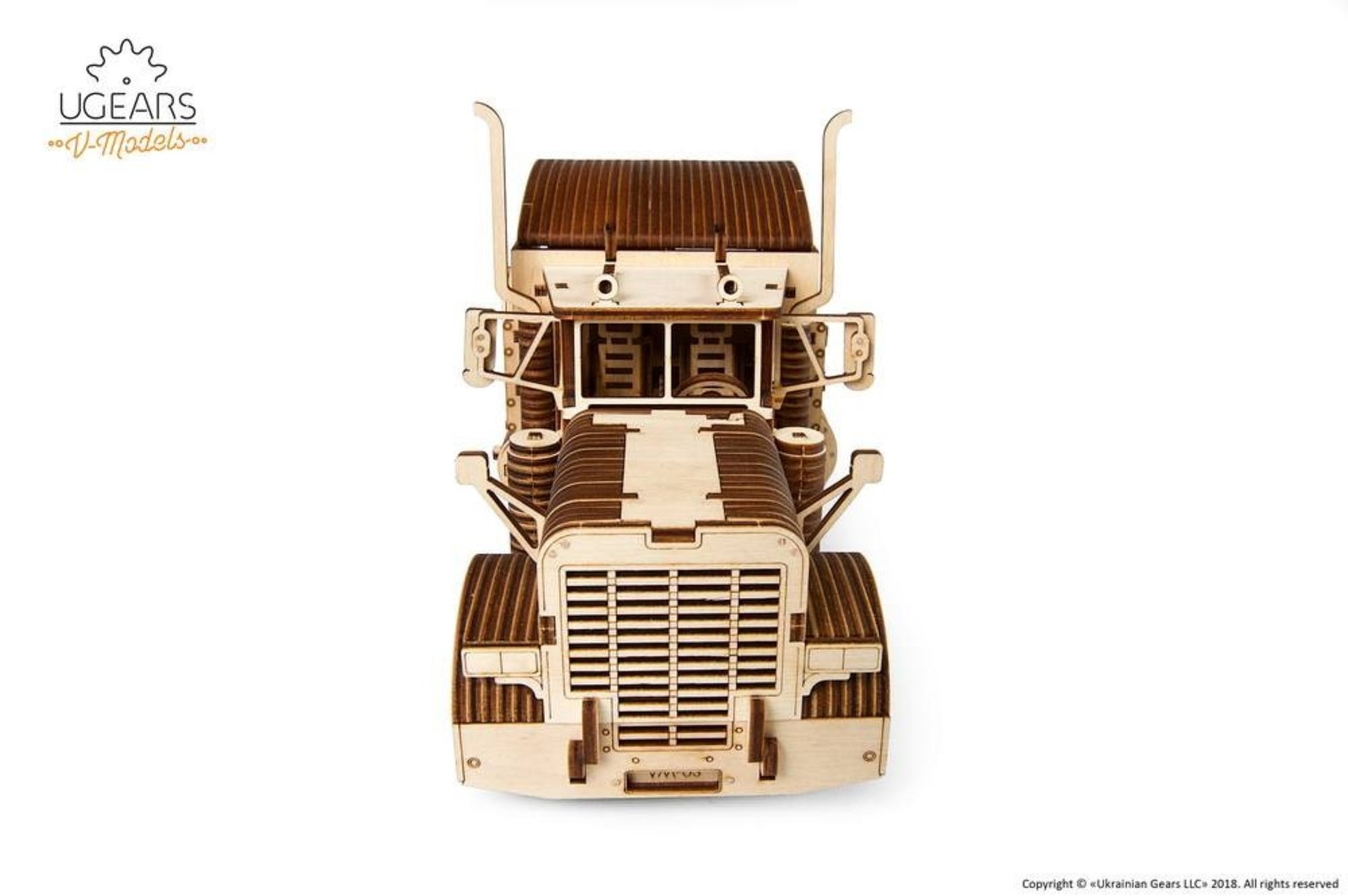 Ugears wonders if you have ever imagined yourself behind the wheel of a large powerful truck, cruising down the highway, alone in your thoughts, watching the landscape pass by. There has always been a certain romance or mystique to the long-haul trucker, the last of the cowboys. With a powerful team of horses under the hood, the trucker is the biggest guy (or gal) on the road, and sometimes the loneliest. But he's got the freedom of the open road, ever-changing office views, and a workplace as big as the country itself. Whether you're an independent owner operator or a dedicated company man, time on the road clears your head and makes you cherish time at home with your family even more. It's early morning: the mist crawling along the highway fills the air with a sleepy chill. Grab a strong coffee at the truckstop, put on your favorite music, and let your imagination take you on a long-haul journey in the Ugears Heavy Boy Truck VM-03.