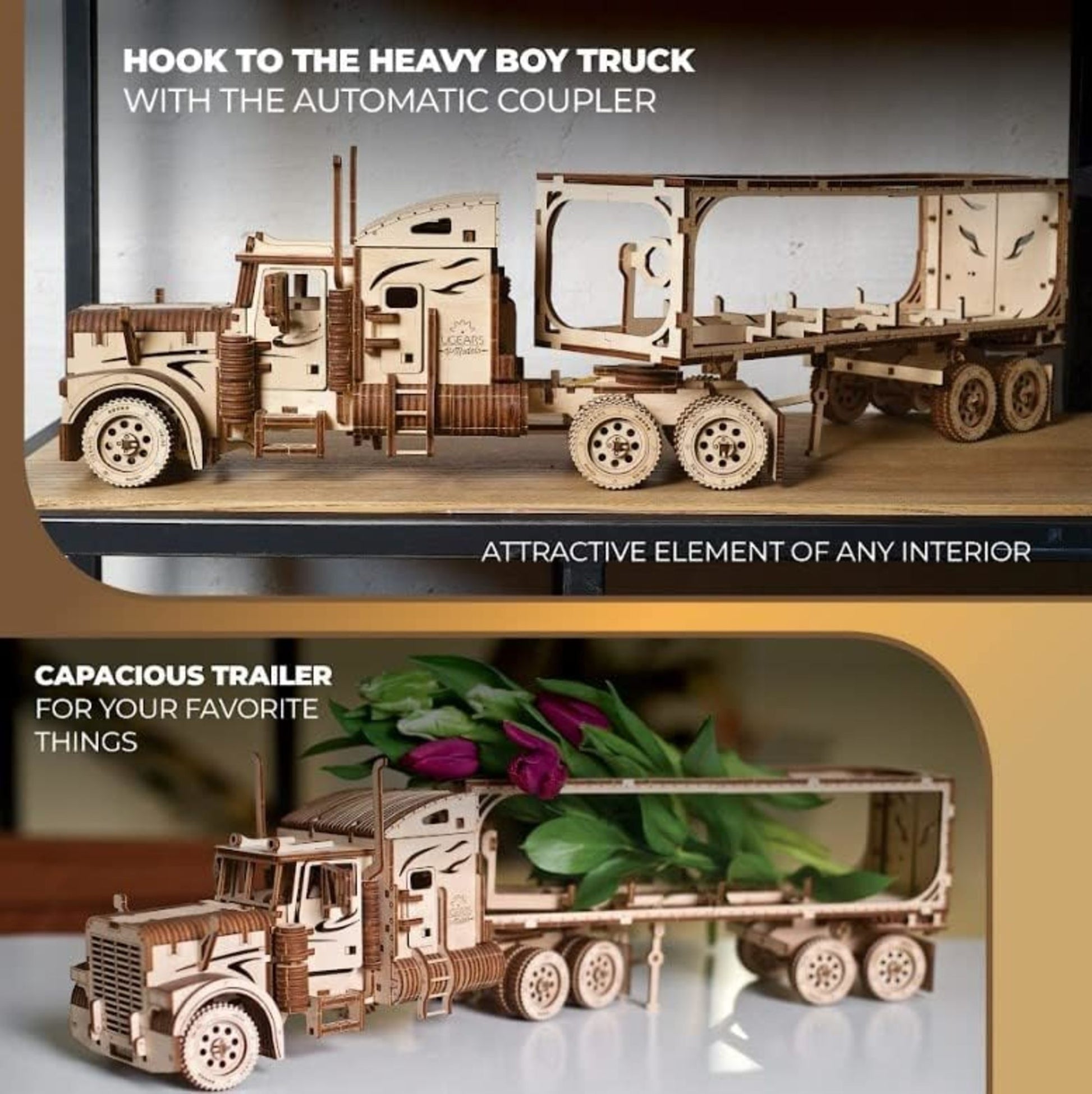 The Heavy Boy Truck from Ugears is an interesting and exciting model on its own. But don’t you have a feeling that a truck unit might use something to actually pull? To complete your long haul freight traffic experience we would like to draw your attention to the Heavy Boy Truck Trailer VM-03.