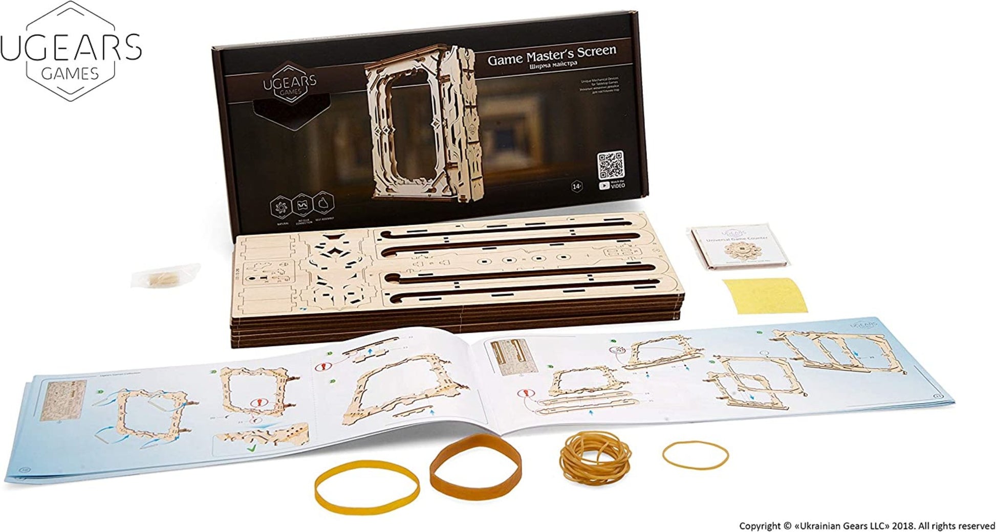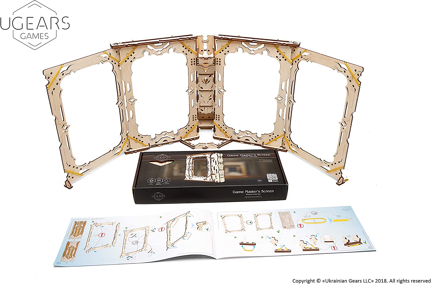 The Master’s Screen kit has all you need for assembly: a set of high-quality plywood boards with precisely cutout parts, full-color, detailed step by step, truly easy to follow instructions in 11 languages (Ukrainian, English, German, French, Polish, Spanish, Russian, Turkish, Italian, Chinese and Korean) and several spare parts inside. No glue and special tools are needed for putting the Master’s Screen together. You can assemble it at home on the table. Fits together like a puzzle without glue or special tools or even toothpicks thanks to Ugears’ patented joints.