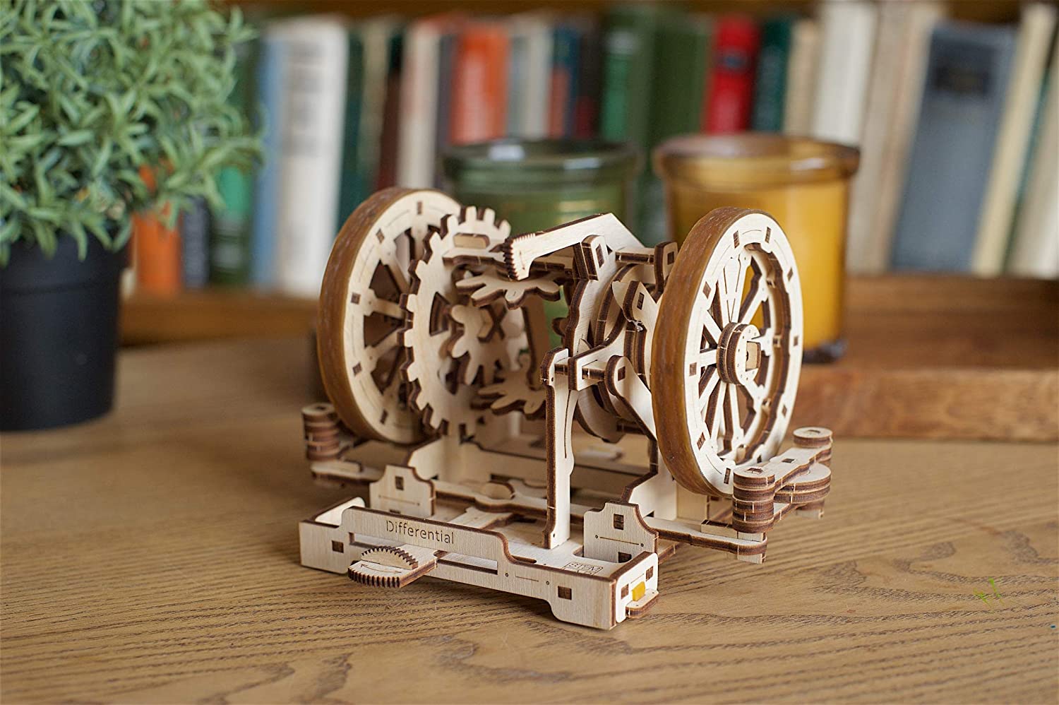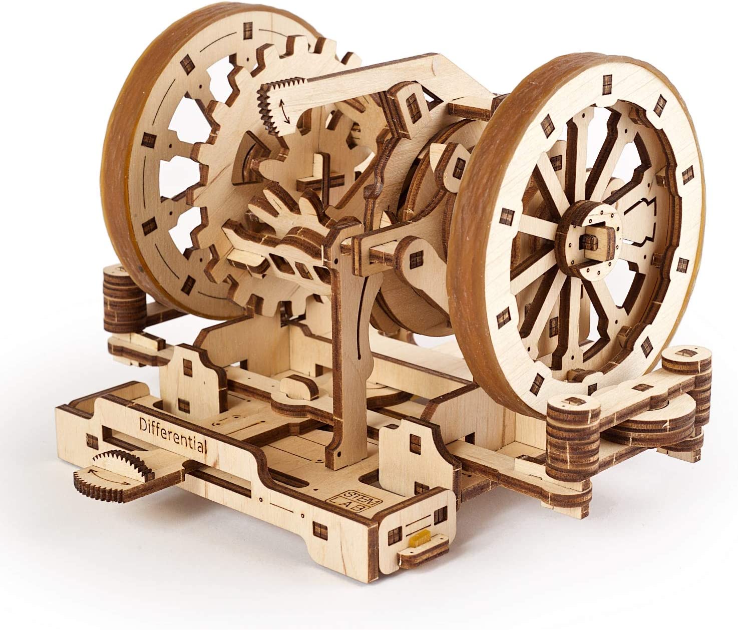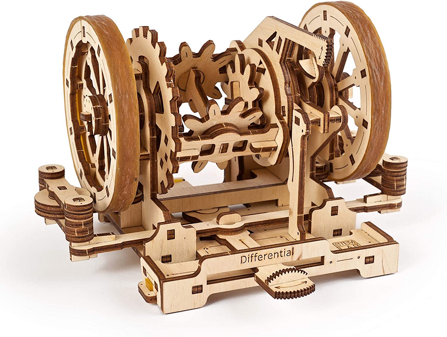 - The DIFFERENTIAL model kit is the mechanism without which you cannot turn a vehicle around. It demonstrates how the two drive wheels mounted on the same axle can rotate at a different rate and can thus cover a different distance. This mechanical toy is a miniature version of the main part of the transmission mechanism of a car. It improves its maneuverability and performance. Similar to other UGears construction kits for adults and children, this educational toy has an iconic design and it moves.