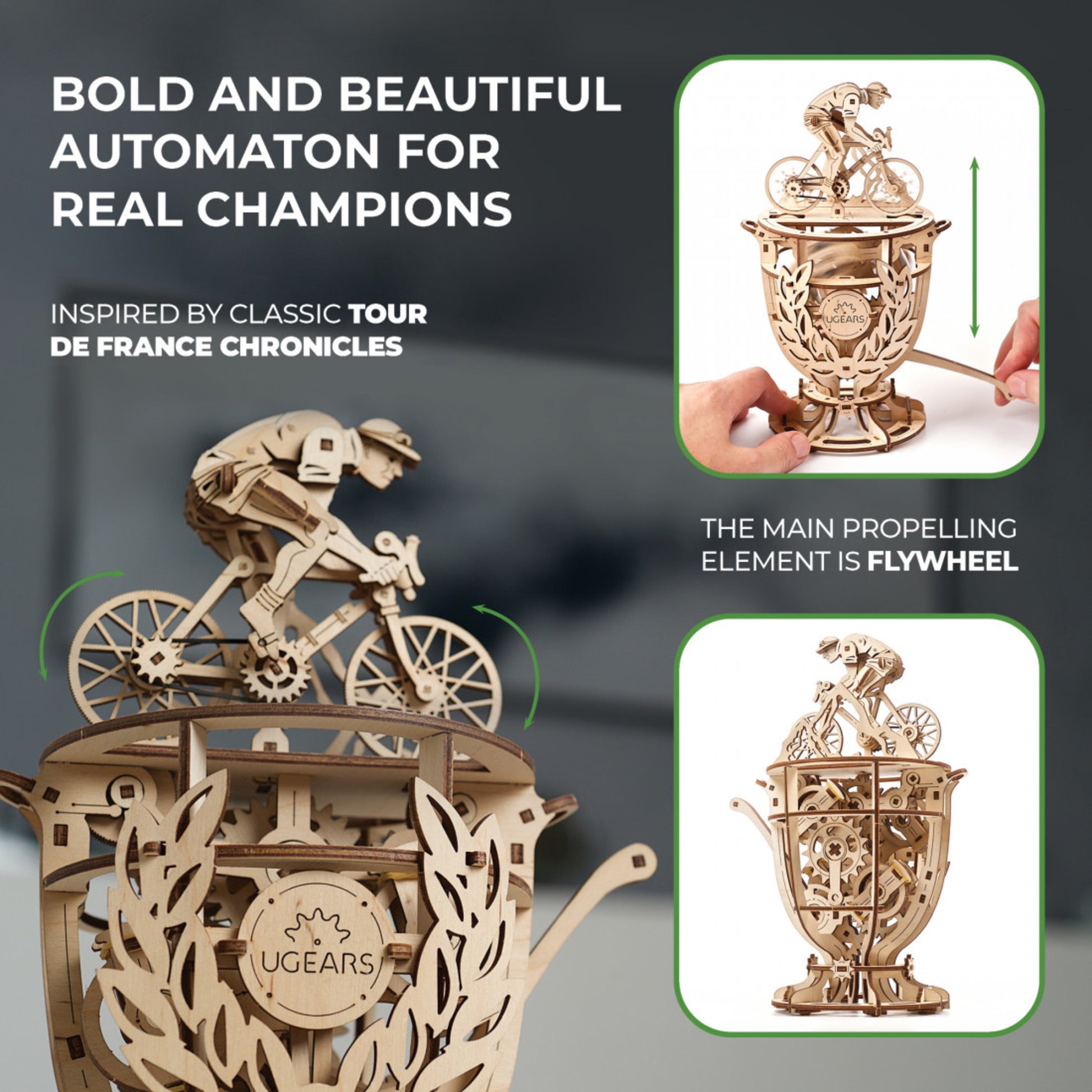 - Bold, beautiful model kits for adults: The new automaton by UGears combines a vintage design with the magic of mechanics and a genuine appreciation for nature. Pull the side lever to launch the cyclist into action.