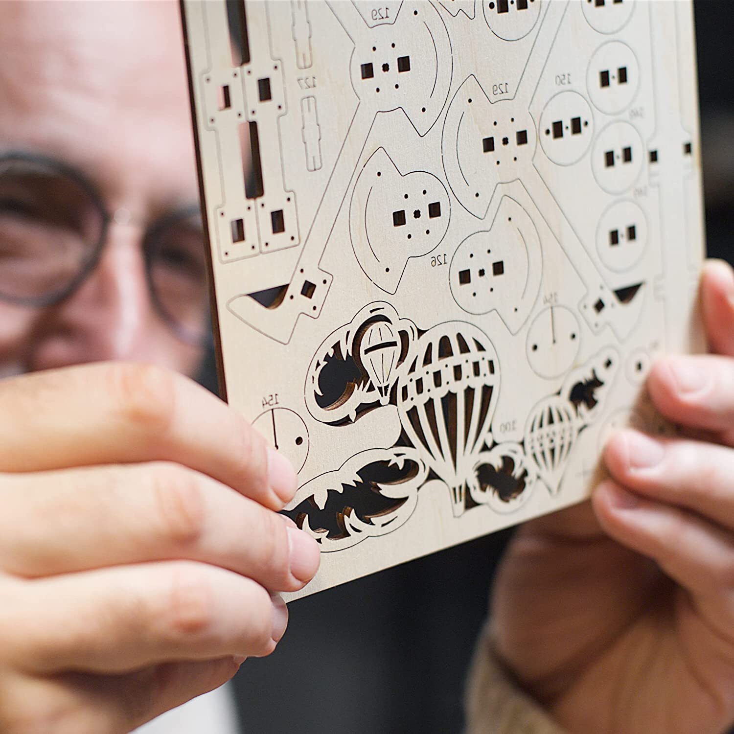 The Aero Clock isn't just a 3D wooden mechanical model, or a pretty showpiece. The Ugears Clock is an actual working clock that you can build yourself, mount to a wall, wind up, then watch as the seconds, minutes, and hours tick by. The Aero Clock is an ingenious puzzle and DIY clock mechanism, unlike any other clock. It is a lovely piece of precise engineering that reveals the workings of a weighted pendulum clock to builders and viewers alike. Like all Ugears models, it also has that extra touch of whimsy, to captivate and charm our growing legion of fans.