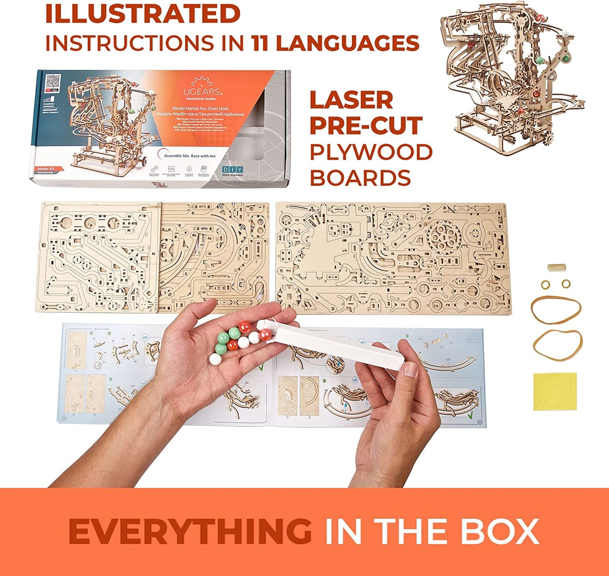 - Fascinating gift: UGears marble run building kit will always delight and surprise family, friends, or colleagues. Get your Marble Run Chain Hoist model building kit now and let the good times roll
