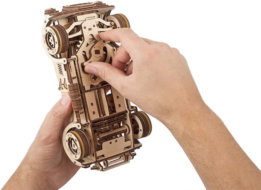 - Mechanical challenge: Like other UGears model building kits and 3D puzzles for adults, this DIY toy car will keep you busy and excited for many hours. Excellent wooden models for adults to build alone or in good company