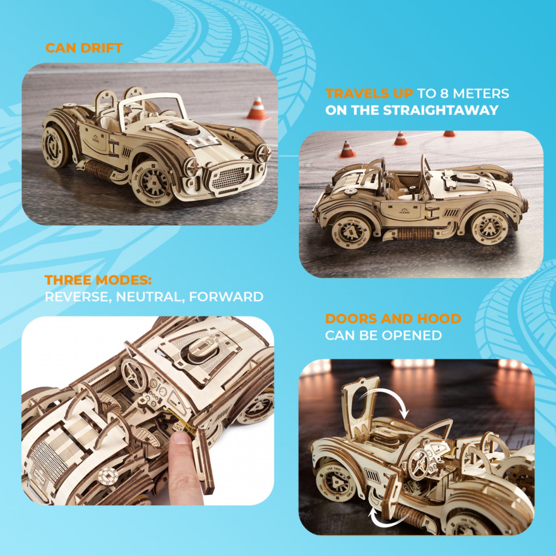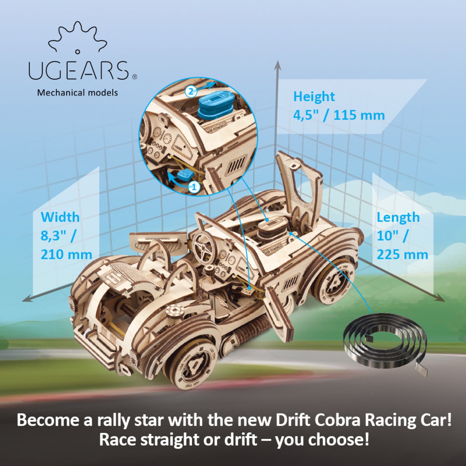 - Legendary muscle car: Ready for an exquisite 3D wooden puzzle for adults? The UGears Drift Cobra Racing Car is a model kit of a racing marvel. This vintage mechanical model is a miniature reproduction of memorable cars from the past century