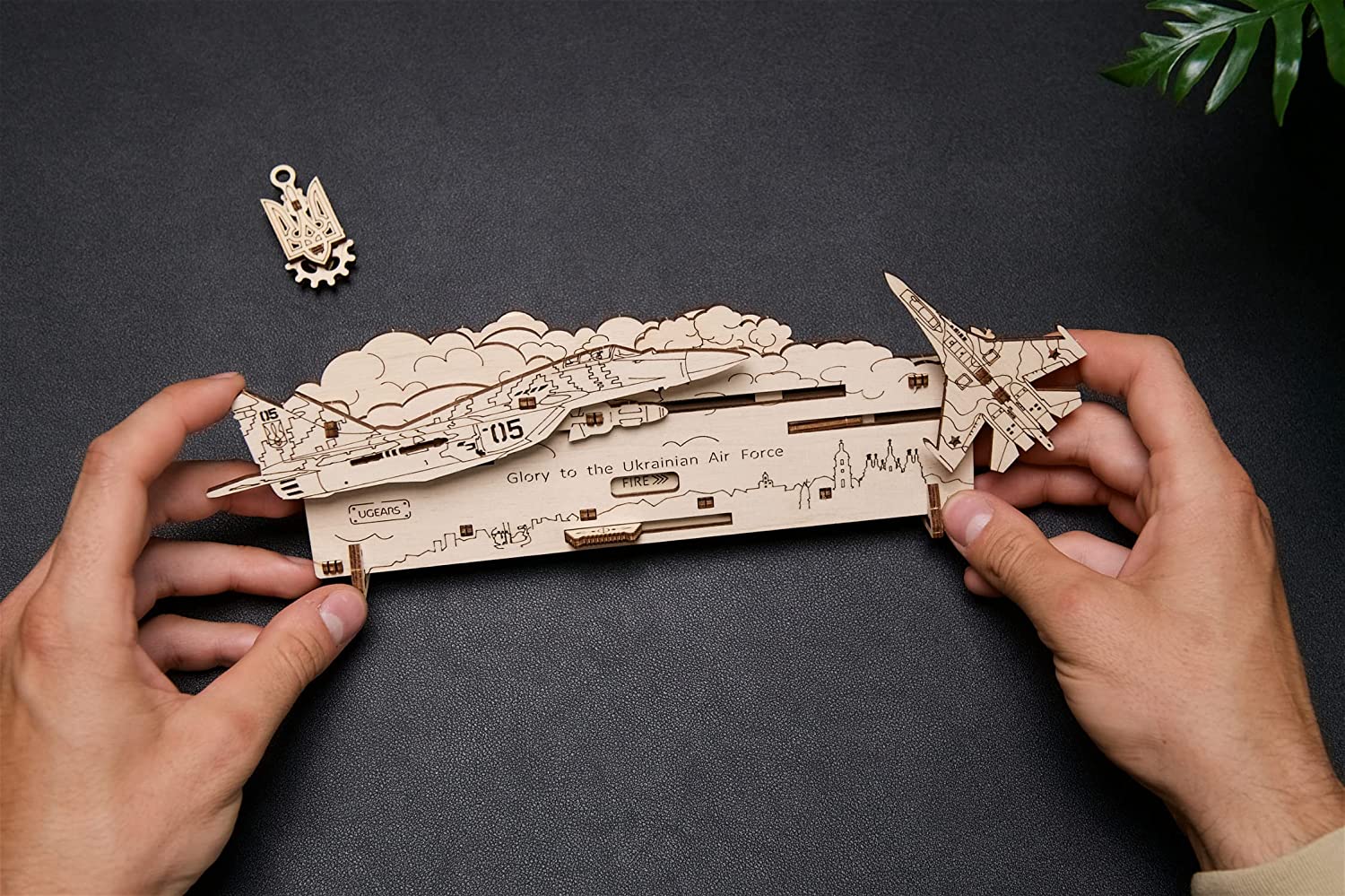 Ugears presents The Ghost of Kyiv Attacks, another mechanical mini-model of the special exclusive Age of Bravery collection. We developed this collection to pay tribute to the Ukrainian nation and Ukrainian defenders throughout history, including those fighting for the freedom of our country right now. We call the Age of Bravery series models "mechanical stories" because they depict real events of the current war.