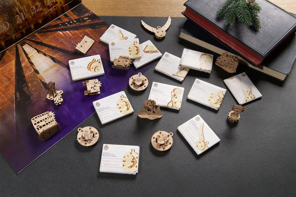 - Christmas is a magical time. This year, make it more magical than ever with the UGears Harry Potter™ Advent Calendar. The excitement and adventure grow each day, starting December 1st as you open the first of 24 windows, revealing an envelope containing wooden parts and instructions. Connect the parts together to build a figurine or other special item from the universe of Harry Potter™, created by J.K. Rowling, then display them on the enchanting box, hang them on the Christmas tree, or play with them as your collection grows throughout the month.