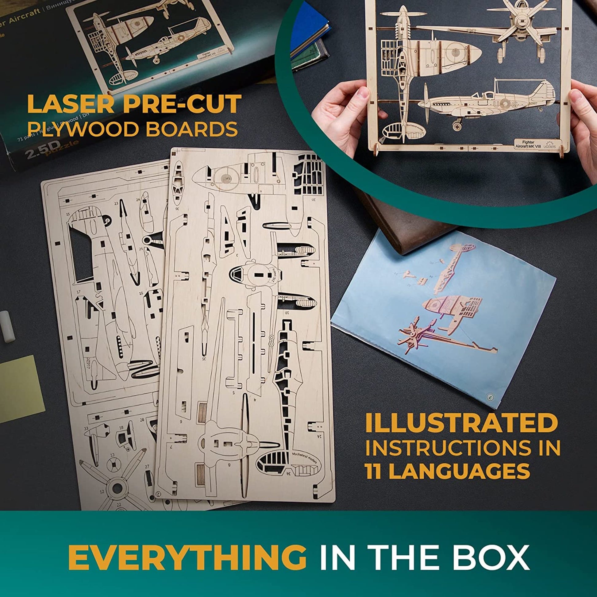 - Excellent DIY gift: UGears military airplanes and wooden puzzles for adults and kids gift quality time and beautiful memories. Delight your loved ones with this cool Fighter Aircraft 2.5D puzzle